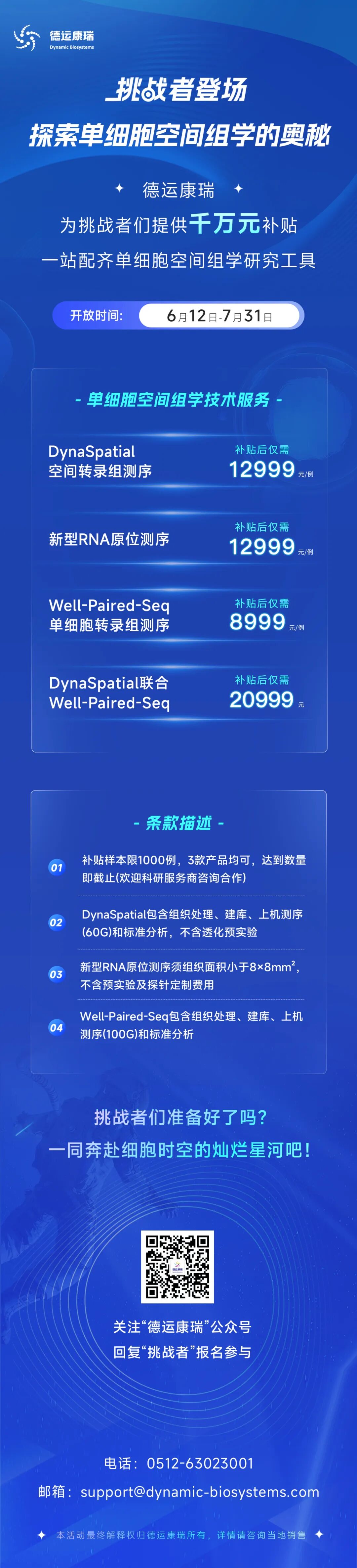 ,对DynaSpatial空间转录组测序、Well-Paired-Seq单细胞转录组测序及新型RNA原位测序三款自研产品推出联合推广活动,为科学家一站配齐单细胞空间组学研究工具。