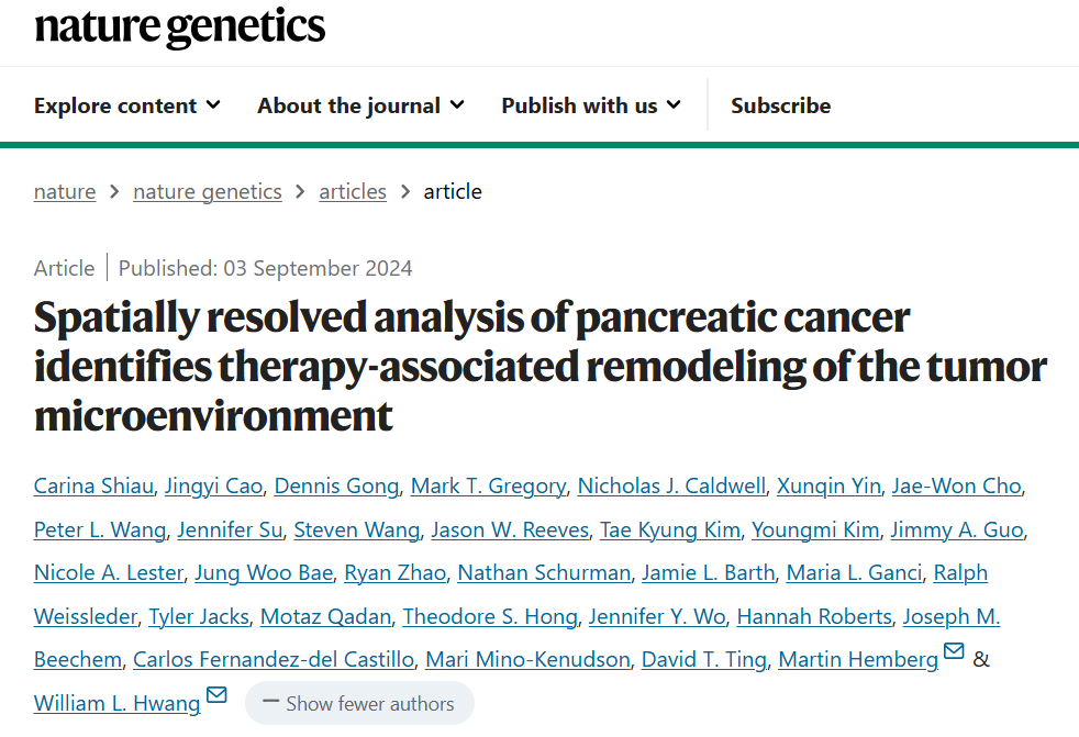 单细胞测序网讯:9月3日,Broad研究所Martin Hemberg团队与哈佛医学院William L. Hwang团队的研究人员共同在Nature Genetics杂志以“Spatially resolved analysis of pancreatic cancer identifies therapy-associated remodeling of the tumor microenvironment”为题发表了研究论文,他们利用单细胞空间转录组学和计算方法来描述与胰腺导管腺癌(PDAC)治疗反应一致的肿瘤微环境的变化。