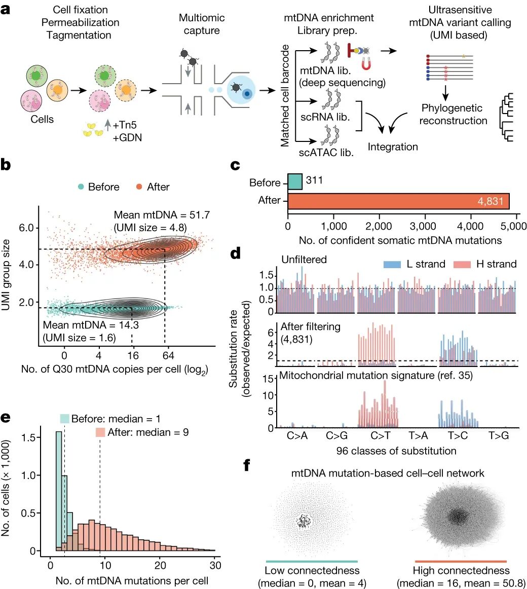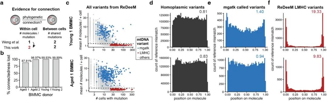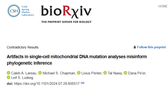 导语 追踪谱系和克隆性的细胞条形码具有巨大的潜力,可以重新定义对发育和再生过程的理解,并研究疾病的发病机制。基于测序的体细胞线粒体DNA(mtDNA)和核DNA(nDNA)突变鉴定揭示了几乎所有人体组织(包括造血系统)中的克隆嵌合。 Weng等人[1]描述了具有深度线粒体突变分析(ReDeeM)的调节多组学,报告了前所未有的细胞间共享的mtDNA变体数量。然而,该结果是否可信? 单细胞测序网:2024年7月29日,美国斯隆-凯特琳癌症研究所Caleb A. Lareau等人就美国哈佛医学院波士顿儿童医院Weng等人于2024年1月22日发表在Nature上的研究结论(Deciphering cell states and genealogies of human haematopoiesis)提出质疑,认为Weng等人提出的ReDeeM方法分析流程正交验证不足,在文库生成和序列比对上游存在大量技术伪影,可能误导系统发育推断。该文章“Artifacts in single-cell mitochondrial DNA mutation analyses misinform phylogenetic inference”发表在预印版上。