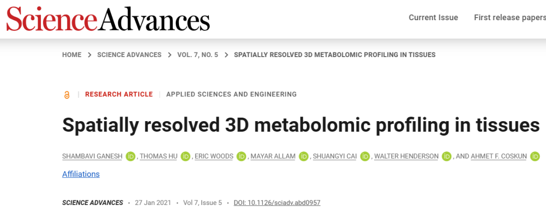 这项研究以 Coskun 团队开发的一项技术为基础,该技术在2021年发表于 Science Advances 的文章 “Spatially resolved 3D metabolomic profiling in tissues” 中进行了描述。在那篇文章中,该团队介绍了一种测量代谢物和蛋白质活性的技术,作为人体组织样本综合剖析的一部分。