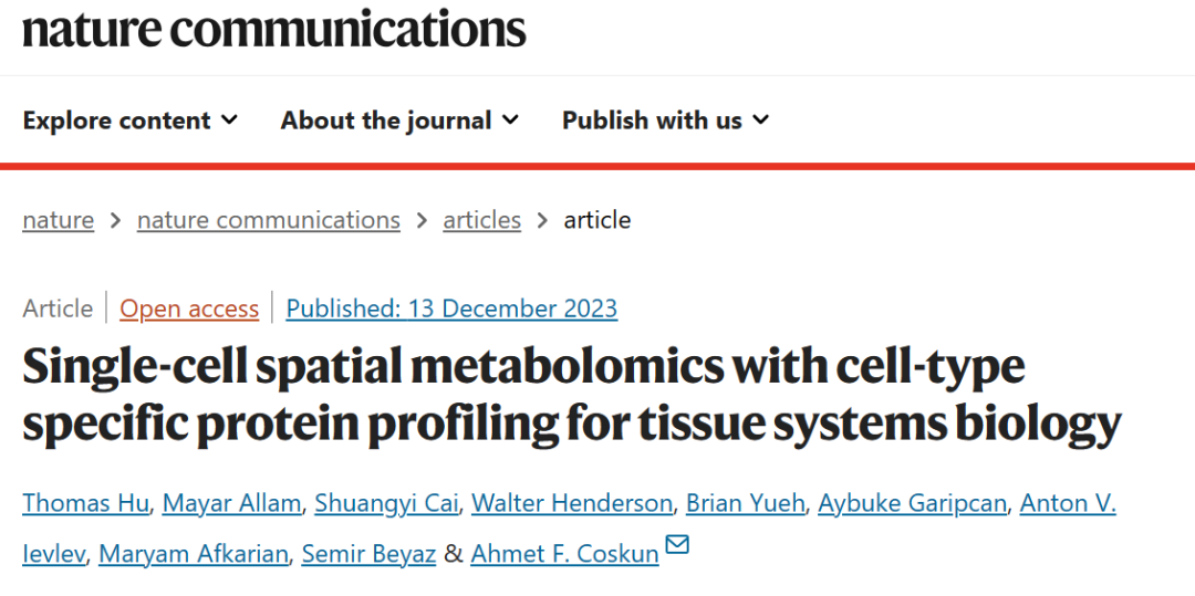 自然通讯 | 开创单细胞空间代谢组学之先河!Coskun等报道scSpaMet技术发表时间:2023-12-21 18:11