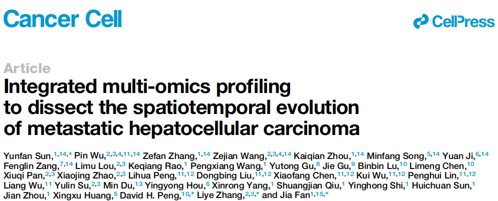 Cancer Cell | 樊嘉院士团队首次绘制肝癌转移的时空多组学演化图谱发表时间:2023-12-15 16:52