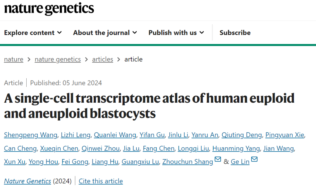 Nat Genet | 林戈/商周春合作绘制人类全染色体组非整倍体囊胚的单细胞图谱发表时间:2024-06-18 08:24